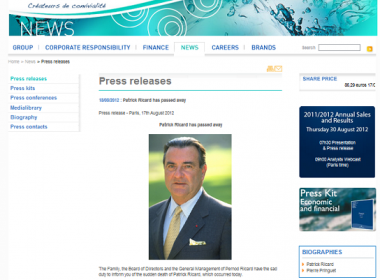 Patrick Ricard, o emblemático presidente da Pernod Ricard, que detém marcas populares mundialmente, como a vodca Absolut e o uísque Ballantine's, morreu, subitamente, na sexta-feira (17). Em comunicado distribuído neste sábado (18), a empresa informou que um tributo ao presidente será prestado nos próximos dias e que divulgará detalhes sobre o funeral em breve.